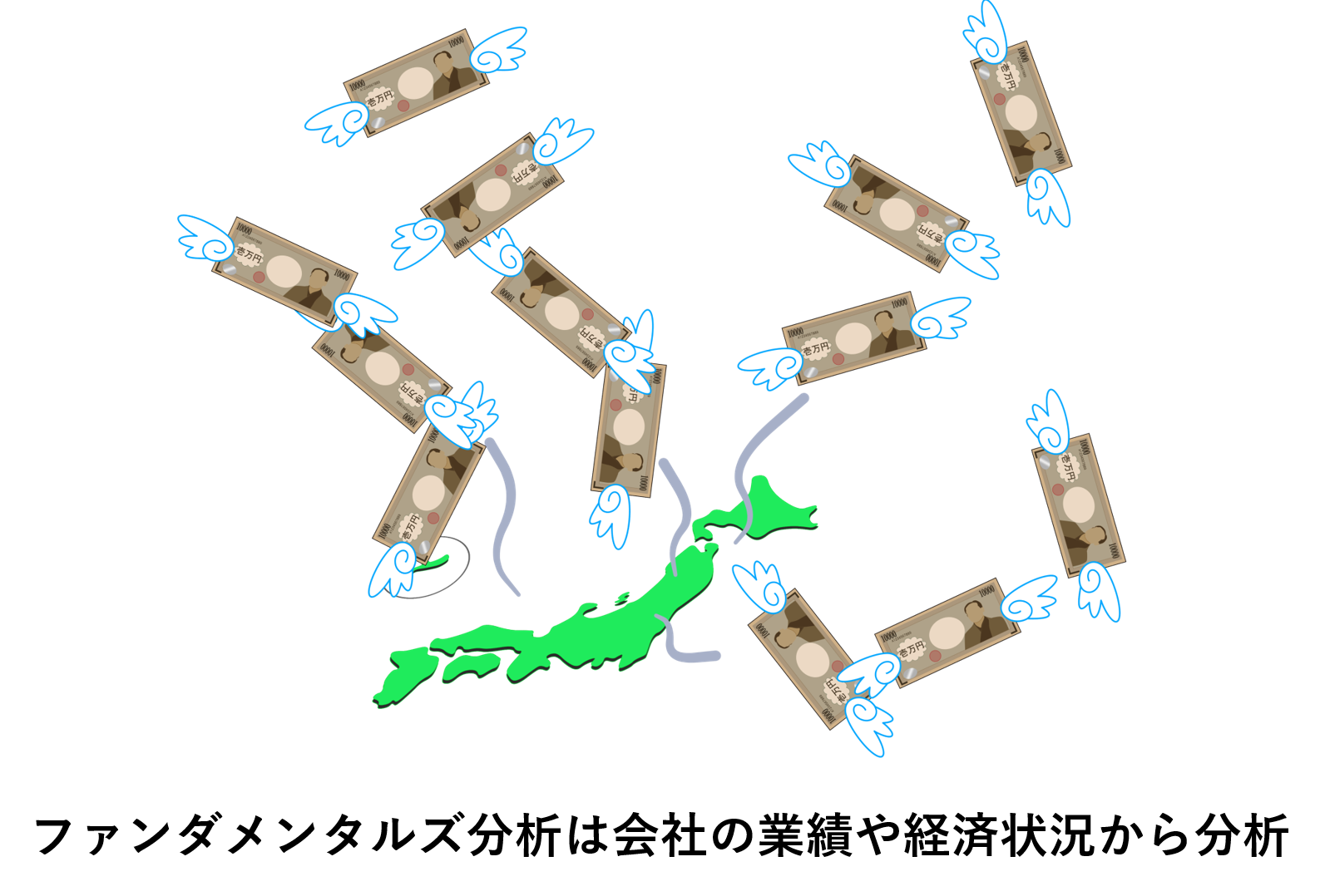 株の需要と供給に影響を与えうる要因でお話ししたような、会社の業績や経済状況から分析することをファンダメンタルズ分析と言います。