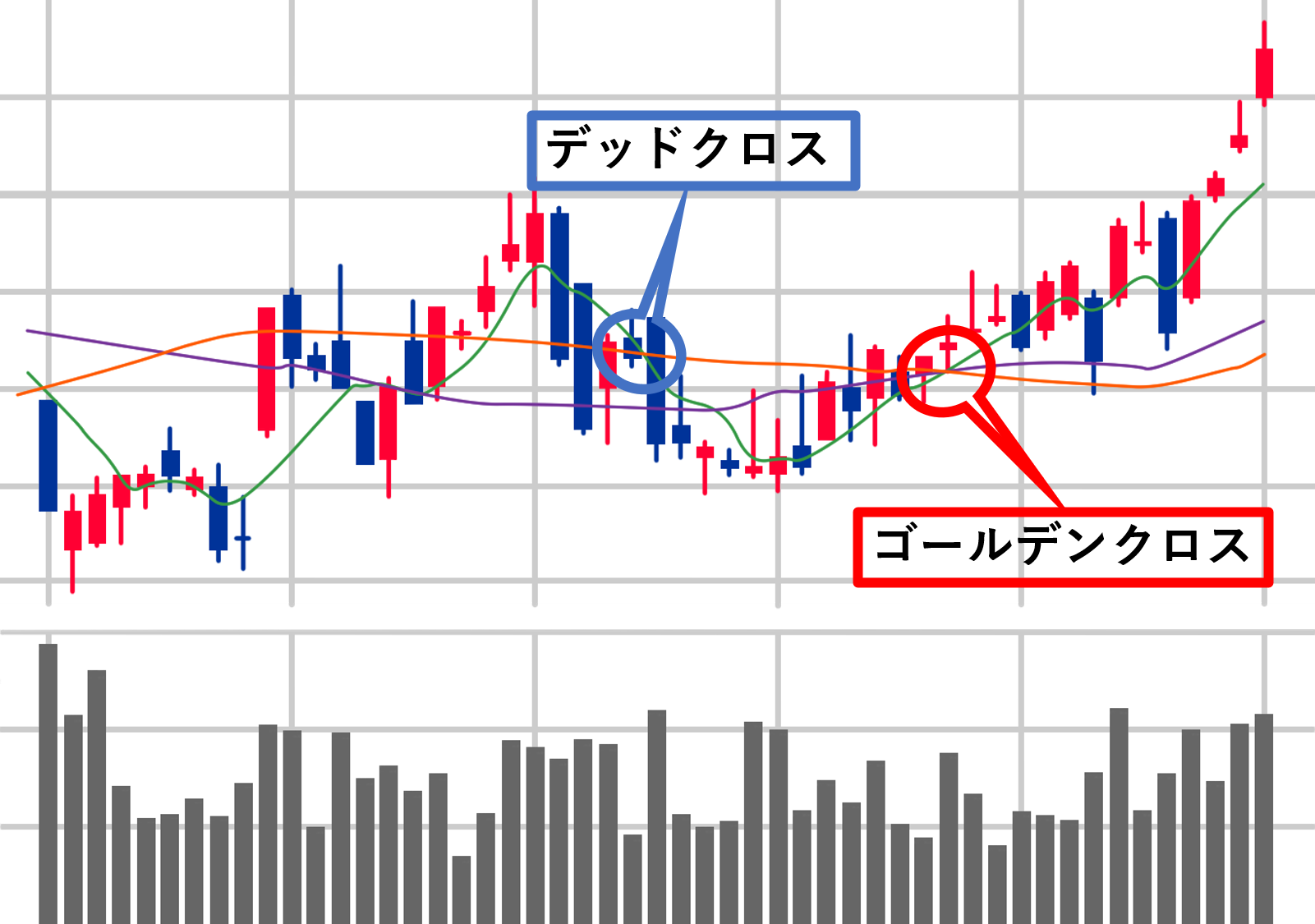 もう1つトレンドをつかむ方法があります。それがゴールデンクロスとデッドクロスです。
