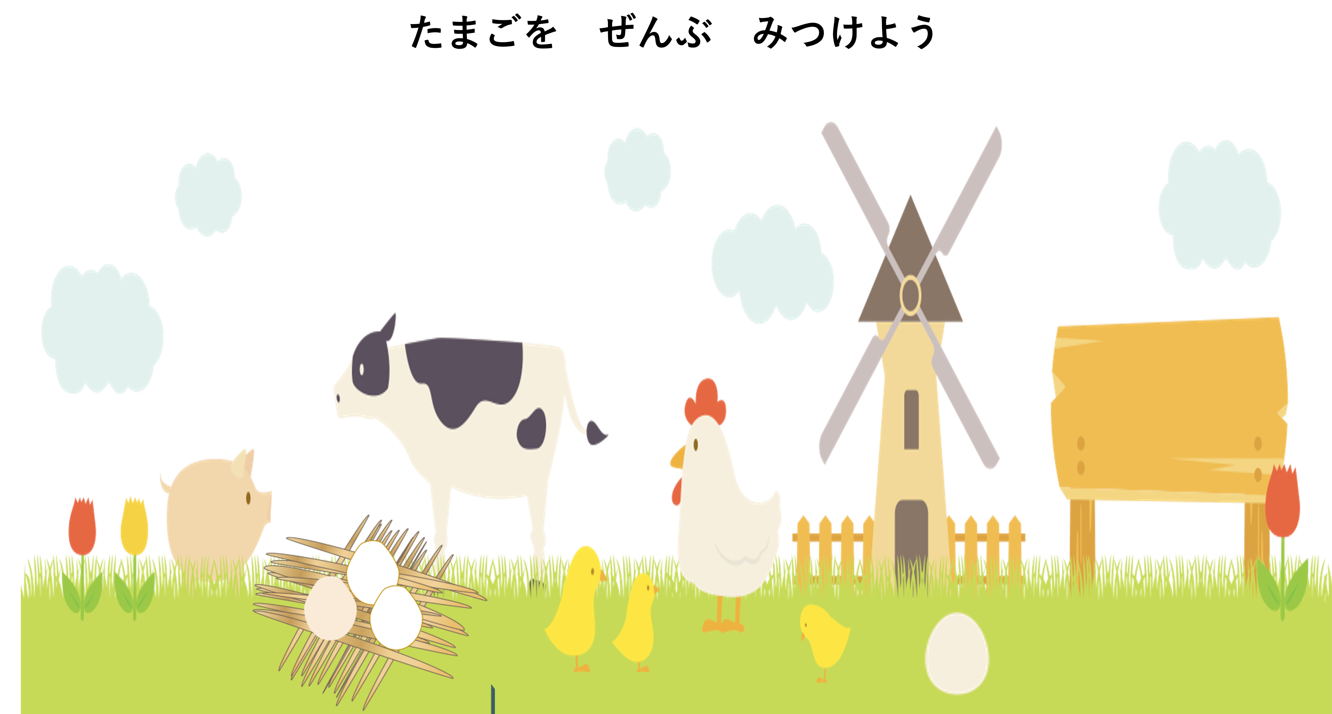 卵も見つけることができたら、同様に「全部で卵は何個集まったかな?」と個数を聞いて、数を数えさせましょう。
