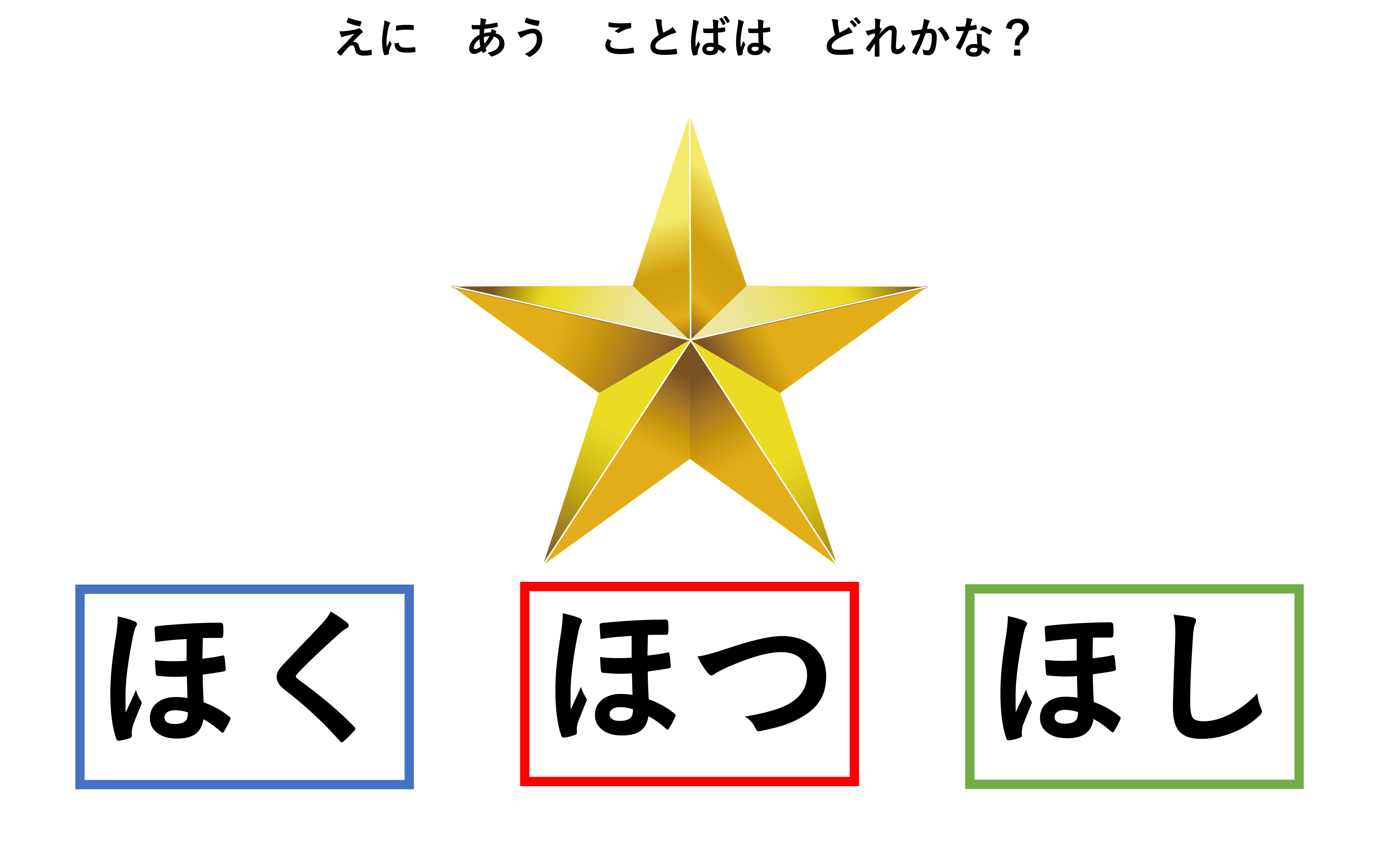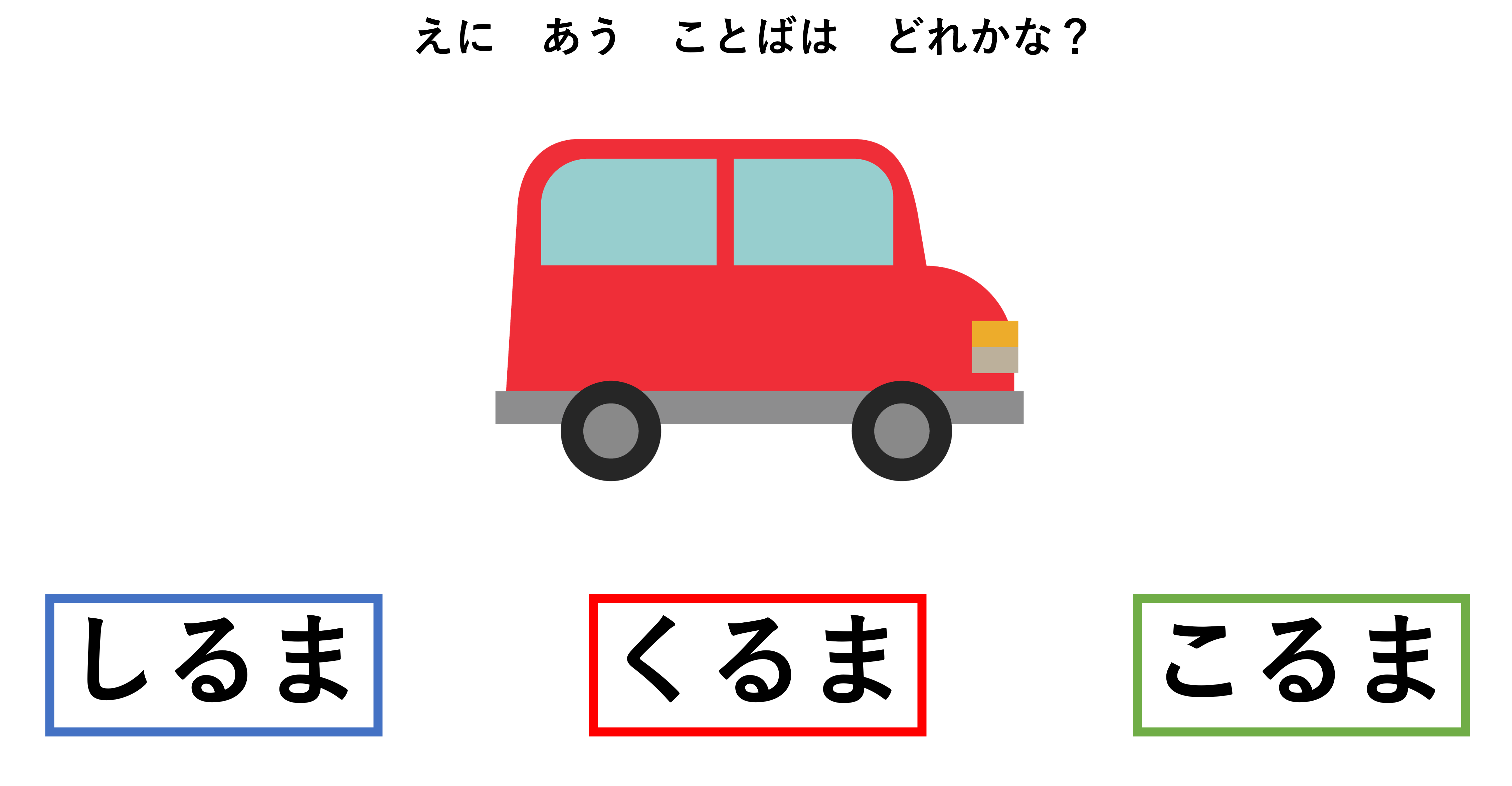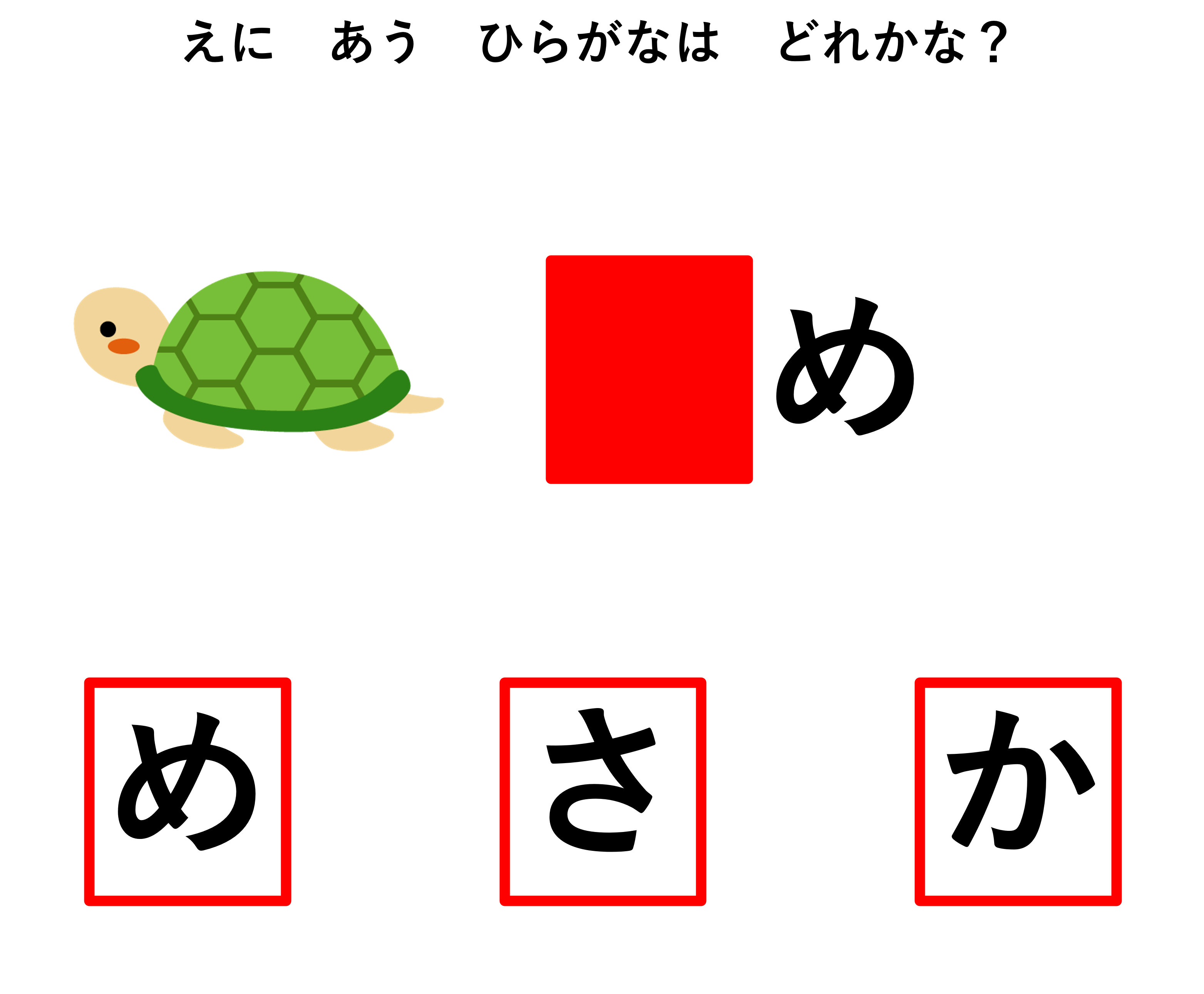 最後にもう1問。「絵に合うひらがなはどれかな?」と伝えます。