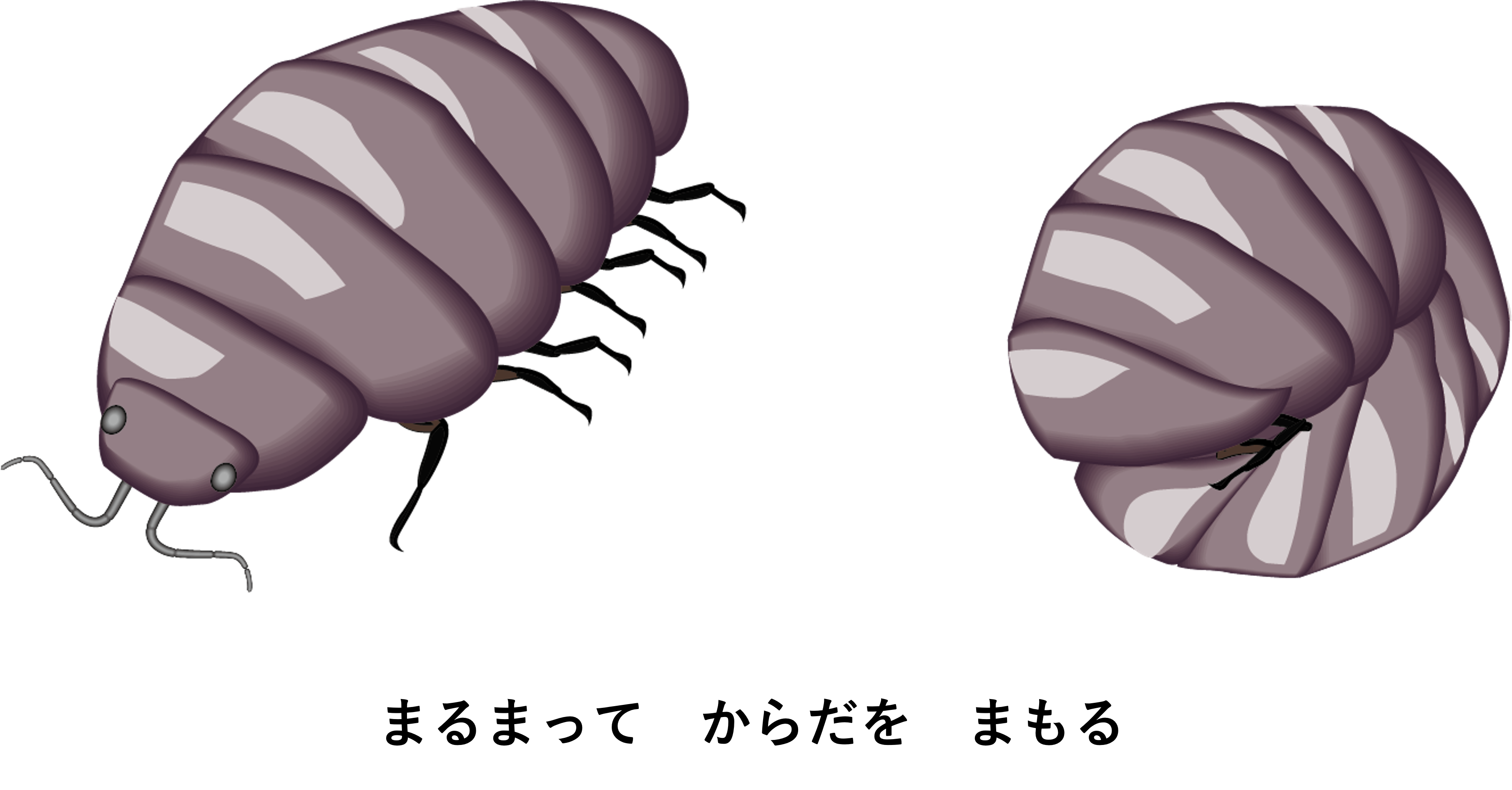 体は硬い殻が重なってできているため、敵から身を守るために丸々ことができます。